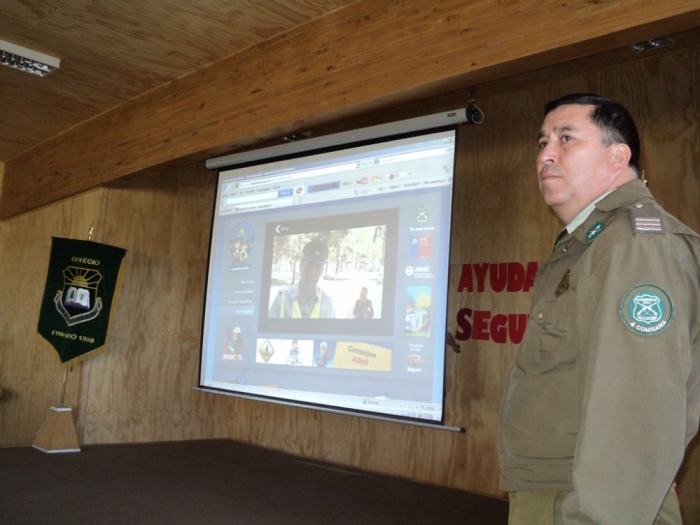 La charla fue dictada por el Suboficial Juan Carlos Espinoza de la Cuarta comisaria de Yungay. Ademas los invitó a visitar la pagina Web diseñada por Carabineros de Chile que tiene relación con las Brigadas Escolares.