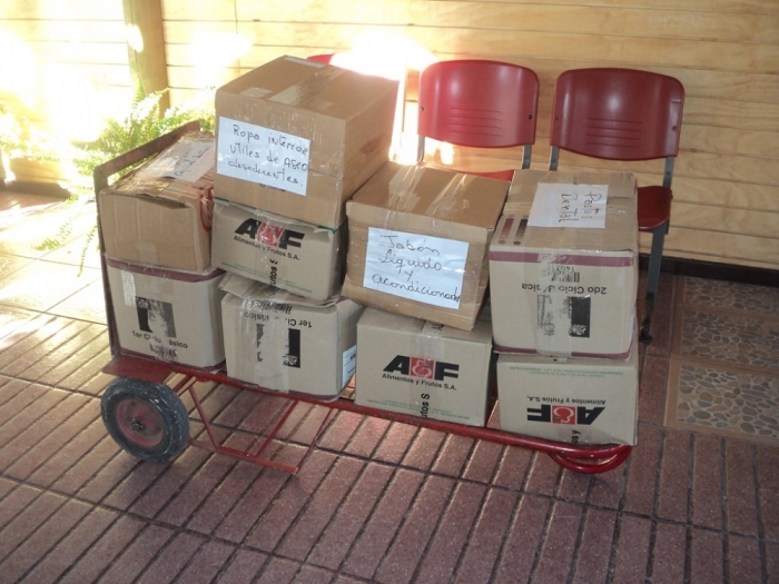 La donación se hace llegar hoy en la mañana a la Parroquia San Miguel de Yungay que se encargara de enviarlos a Valparaíso.
