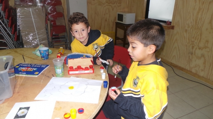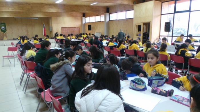 En el salón del colegio se llevó a cabo un encuentro artístico en el cual estudiantes de Pre-kinder a Cuarto medio se juntaron para crear dibujos pintados con diferentes recursos plásticos como: témpera, grafito, cera, scripto, lápices de colores, pasteles, etc.