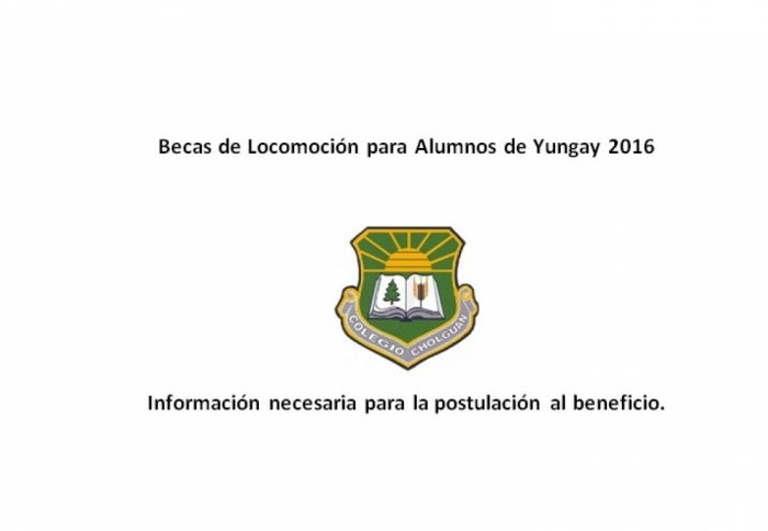Se informa a la comunidad escolar del Colegio Cholguán, que se abre el proceso de postulación a la Beca de Locomoción para los alumnos que tengan su residencia en Yungay.