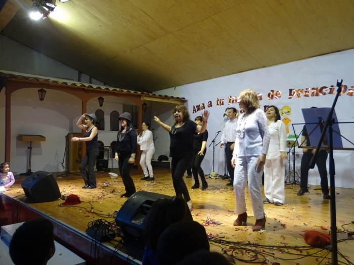 Agradecemos y felicitamos a todos y cada uno de los papás que subieron al escenario y mojaron la camiseta por sus respectivos cursos. A los profesores que a pesar de sus innumerables actividades dedicaron tiempo a la preparación de bailes y cantos. A los niños y jóvenes que apoyaron la coreografía de sus padres y por supuesto, a quienes desde su asiento aplaudieron, apoyaron y disfrutaron con el trabajo realizado.