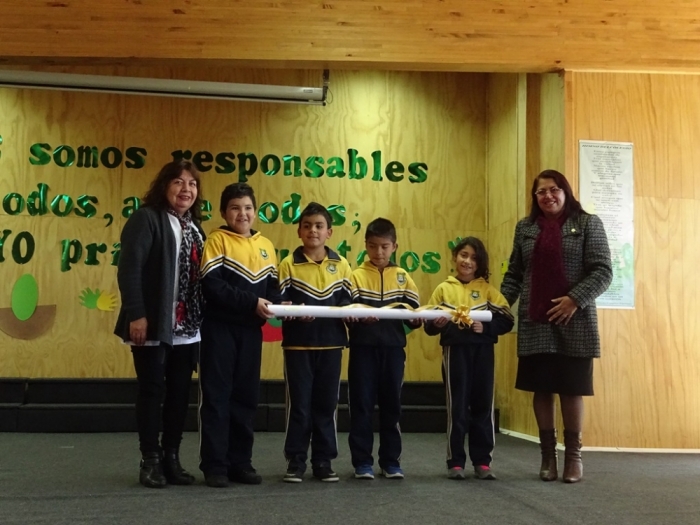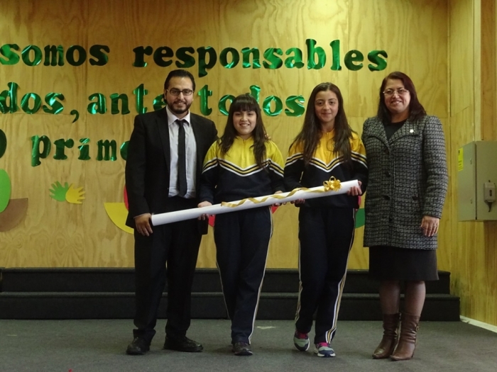 Por ultimo se nuestra directora entregó la gigantografía de los decálogos de convivencia a cada profesor jefe, acompañado de una delegación de estudiantes de cada curso.