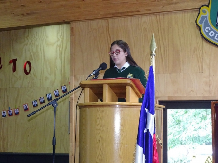 Los estudiantes de 4° Medio 2016 se despidieron del Colegio con el Acto matinal el lunes 14 de Noviembre. Este Acto contó con un despliegue de números artísticos, danzas, cantos y videos preparados con mucha energía y motivación, despidiéndose de sus profesores y compañeros. De esta manera los alumnos de 4° Medio dan por finalizada su periodo escolar y se preparan con mucha emoción para las actividades de Licenciatura, Misa, y Fiesta de Licenciatura, como también para la rendir la Prueba de Selección Universitaria.