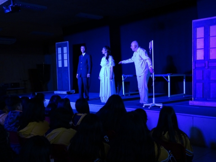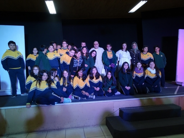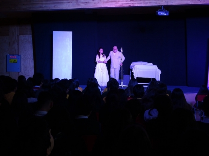 La obra de teatro "Neruda en Neruda", de Nelson Goycoolea, fue presentada en nuestro Colegio por la Compañía Puerto de Sueños. Transcurre la obra en la Clínica Santa María con el poeta Pablo Neruda, en compañía de su musa inspiradora Calíope. Durante el transcurso se presenta un recuento de su vida, recordando su infancia, su llegada a la capital, su casa de Maruri 513 donde escribió su primer libro de poemas “Crepusculario”, el viaje a Rangún como Cónsul, la muerte de su padre, el encuentro con Gabriela Mistral, la guerra civil española, su amigo García Lorca, el golpe militar de Chile y su gran amor: Matilde Urrutia. Fue presentada el día 07-08-2017 a los alumnos de 7º Básico a 4º Medio de nuestro colegio, en compañía de sus profesores y seguida con gran interés y mucho respeto, siendo una grata experiencia para los espectadores.