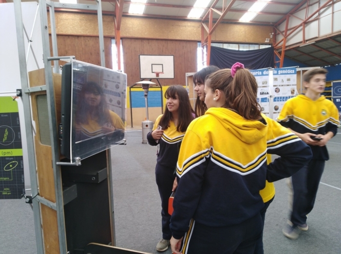Estudiantes del Área de las Ciencias Biología y Química de Tercer y Cuarto Año Medio del Colegio Visitaron el Día viernes 20 de Abril en Chillan la Muestra Itinerante del Museo Interactivo Mirador con el Tema “ GENES , las instrucciones de la vida” que explica de manera simple , interactiva , entretenida y dinámica la relación entre el ADN y la naturaleza de los seres vivos . La muestra compuesta por módulos interactivos permitieron que los asistentes experimentaron en el Tema de genética y el ADN.