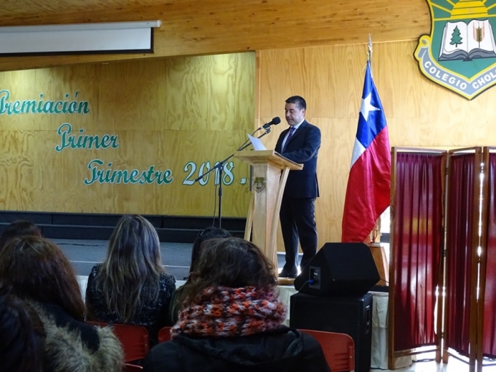 En esta ocasión el Director del establecimiento Don Luis Rubilar H. además de felicitar a quienes fueron premiados, agradeció a los padres, profesores y personal del colegio por el compromiso demostrado en este primer trimestre y les invitó a continuar trabajando con el mismo entusiasmo para el periodo que sigue.
