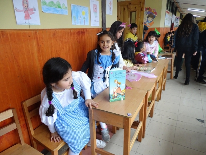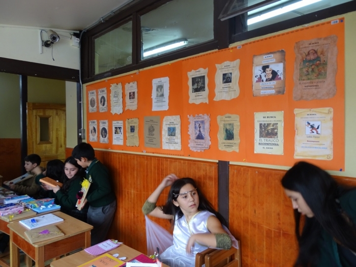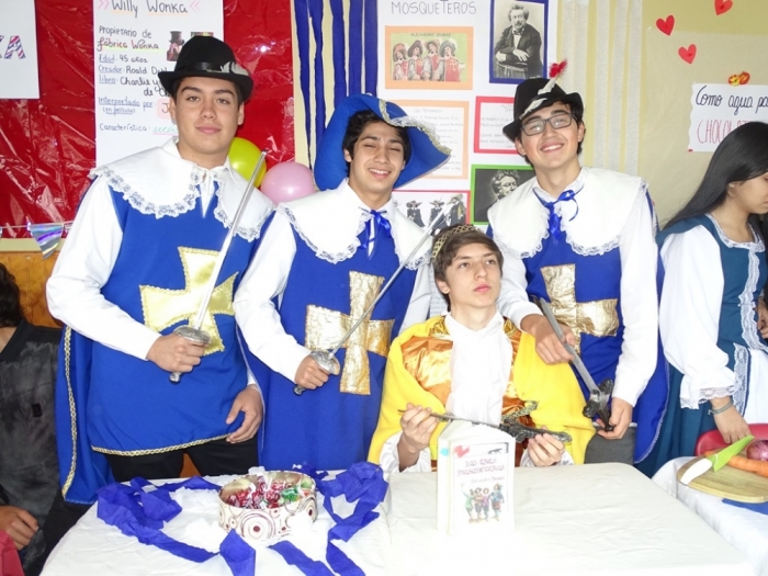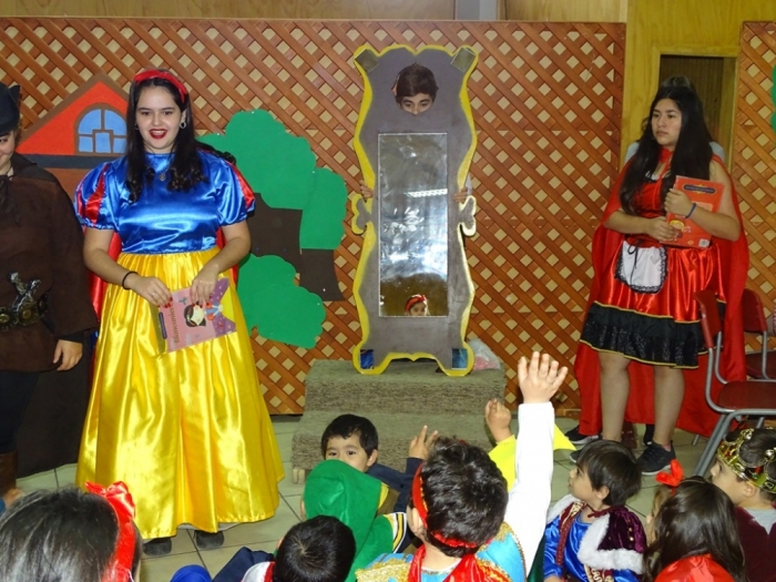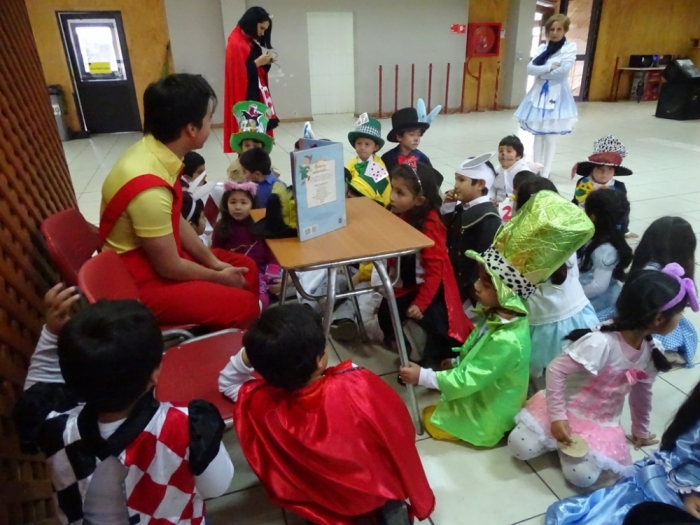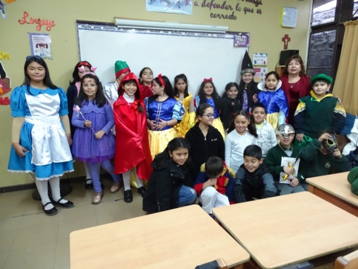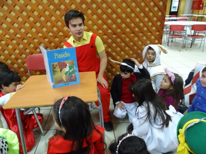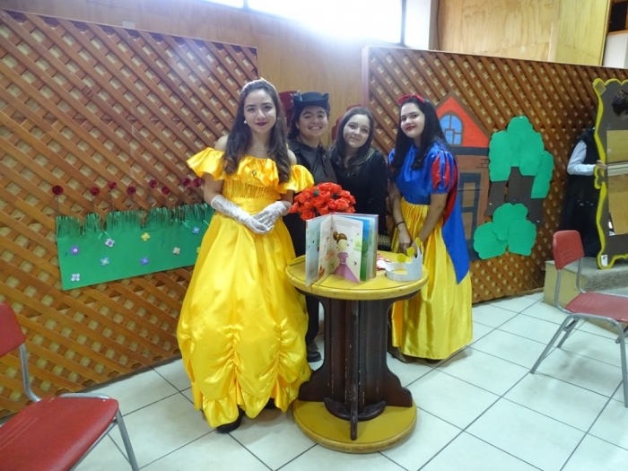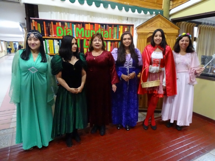 El Día Martes 23 de Abril, fecha en la que se celebra el Día Internacional del Libro y el derecho de autor, nuestro colegio se vistió de personajes literarios y autores que recorrieron nuestros pasillos para invitar a disfrutar de una Feria Literaria en la que cada curso expuso algún trabajo, personaje, autor u obra que incentivara y motivara la curiosidad por conocer y continuar en la senda de la lectura. Por otra parte, los más pequeños del colegio, Pre Kínder y Kínder, vestidos de personajes de cuentos, asistieron a la presentación de cuenta cuentos preparada por alumnos de Tercer Año Medio y a la recreación teatral de la obra La Cenicienta , montaje desarrollado por alumnos de Octavo Año Básico de nuestro establecimiento. Una mañana de entusiasmo y participación a la que se sumaron profesores , quienes también dieron vida ,en su vestuario, a algún personaje de la literatura Universal.