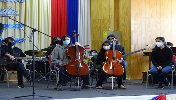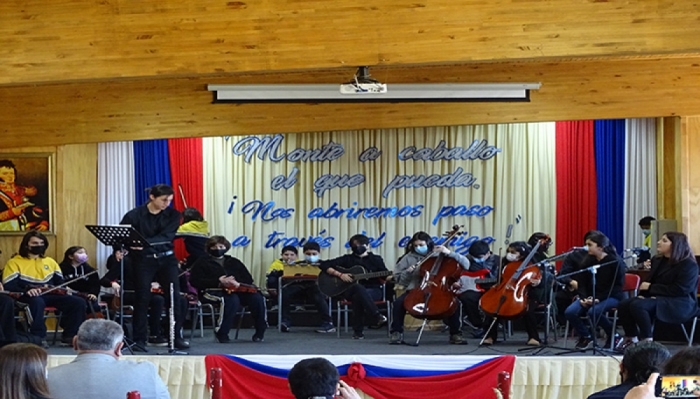 • Presentación Taller de Orquesta Popular, estudiantes de 1° Básico a 4° Medio, dirigido por la profesora de Educación Musical Gustavo Orellana.