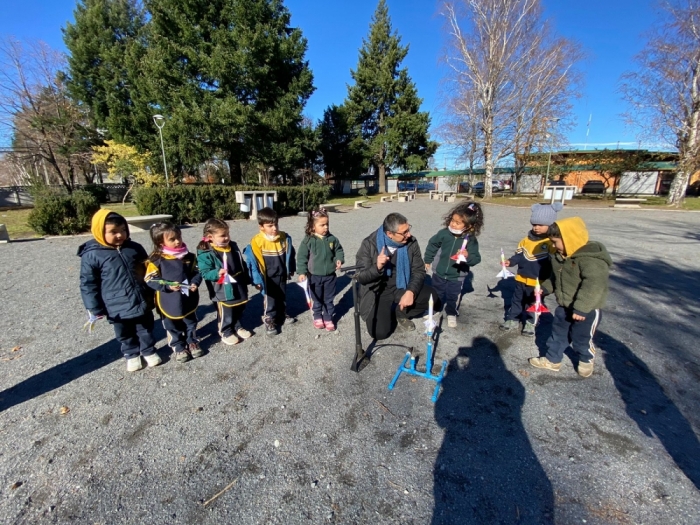 En el marco de la Unidad Temática “ Mi planeta y el Universo” , donde hemos estado llevando a cabo experiencias de aprendizaje relacionadas con el sistema solar, los planetas, constelaciones, medios de transportes espaciales y astronautas. El día de hoy, Lunes 12 de Junio, los niños y niñas del nivel Pre kínder pudieron experimentar la simulación del despegue de cohetes al espacio. El objetivo principal de esta actividad es que los niños/as se hicieran una idea real de cómo son los cohetes y de qué manera pueden viajar al espacio, ofreciendo la posibilidad de “mirar con otros ojos” y formar niños cada vez más curiosos, mejores observadores, que se pregunten sobre la realidad, exploren, busquen información, logren establecer relaciones cada vez más complejas, al mismo tiempo que enriquecen su juego.
