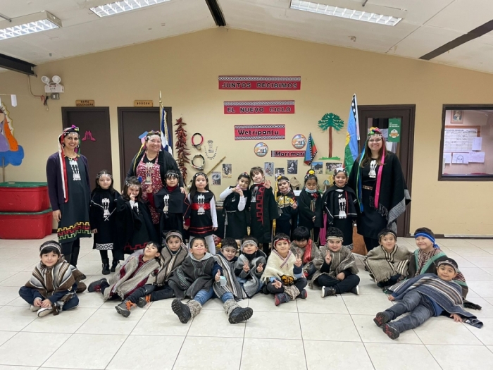 Los niños y las niñas de pre básica, celebraron el proyecto “We tripantu en mi colegio” en donde durante toda la semana se generaron experiencias de aprendizaje relacionadas con la cultura mapuche, observando y escuchando Epew, degustando comidas típicas como; agua con harina, pancito con huevo, tortillas, catutos, mote, sopaipillas, calzones rotos, pajaritos, entre otros. Jugando palín y trümün y creando distintas manualidades con inspiración en la cultura. Para cerrar esta semana, celebramos la ceremonia del we tripantu en donde la machi preparó el altar e invitó a la comunidad a la celebración, iniciando con la quema de las cartas de los buenos deseos creadas por los niños y niñas, luego en símbolo de renovar las energías los niños y niñas lavaron sus manos con agua y cerramos con un baile mapuche de los niños y niñas del pre kínde