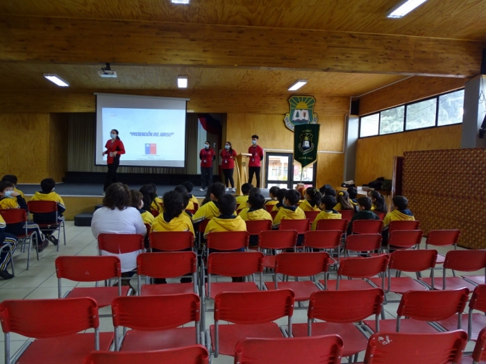 Profesores/as y estudiantes, de 4°,5° y 6° básico asistieron a la Charla -Taller “Prevención del abuso” en el salón de actos de nuestro establecimiento. Fue presentada en esta oportunidad por el equipo profesional de la Seremi de Salud Ñuble, liderada en por la Matrona, Srta. Marucel Henríquez.
