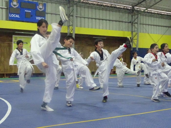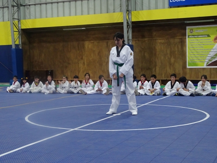 El día lunes 27 de noviembre se desarrolló en nuestro gimnasio del colegio la Ceremonia de entrega de cinta y muestra de la academia de taekwondo dirigida por el monitor Denis Rivas. En esta actividad participaron 15 estudiantes, pertenecientes a la academia de Taekwondo, los cuales demostraron sus habilidades en la disciplina. Luego se realizó la entrega de cinturón en los cuales los estudiantes lograron subir de grado y recibir de sus padres dicho elemento que representa el aprendizaje durante todo un año. Agradecemos a las mamás y papás que participaron en esta actividad que también estuvo acompañada por los compañeros de sus cursos. Esperamos que cada año esta actividad corone el esfuerzo y disciplina de los estudiantes que participan en la academia de Taekwondo.