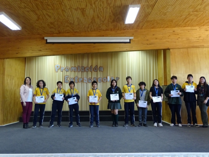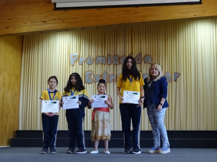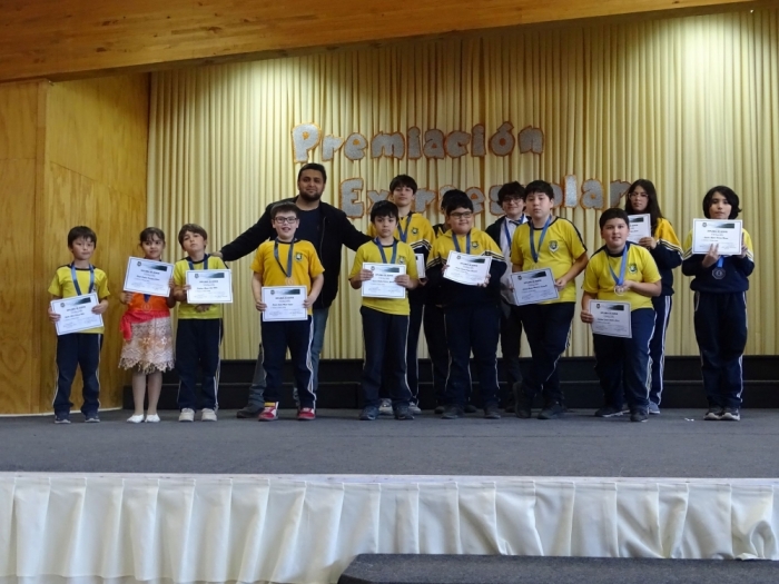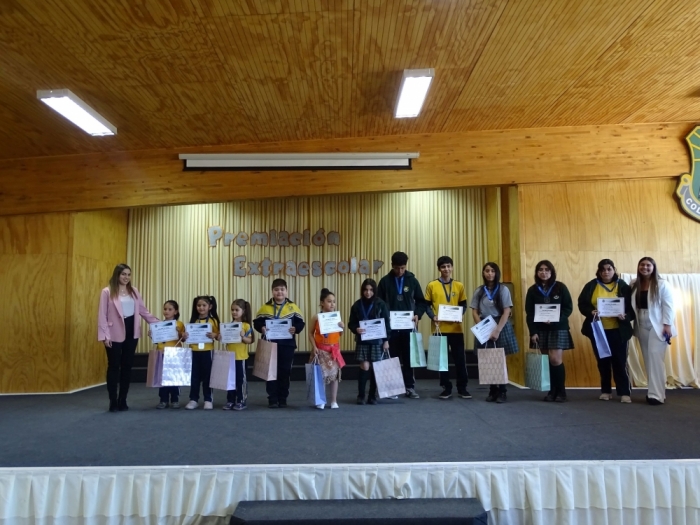El día jueves 30 de noviembre se llevó a cabo la Premiación Anual del área Extraescolar de nuestro colegio que tiene por objetivo destacar la participación durante todo el año de los estudiantes por academia. Este año se realizaron 37 academias, destinadas a estudiantes de 1° básico a 4° medio, las cuales abordaban el área deportiva, medio ambiente, preparación para la PAES, artística y musical, danza, debate, inglés, periodismo, matemática, robótica y teatro, en la cual más de 280 estudiantes participaron desde abril a noviembre, desarrollando y potenciando sus habilidades. Estamos muy felices de cada año ofrecer una gama diversa de academias que favorezca el desarrollo de los talentos y habilidades de nuestros estudiantes. Además en esta ceremonia se destacó la participación en dos concursos de arte, Salud mental y Natalicio de Bernardo O"Higgins, a quienes se destacaron por su participación y lugar que obtuvieron. En esta ceremonia tuvimos la participación de la academia de danza dirigida por la monitora Katherine Segura. Agradecemos a todos los estudiantes por su participación en este año y a todos los monitores y profesores que impartieron cada academia.