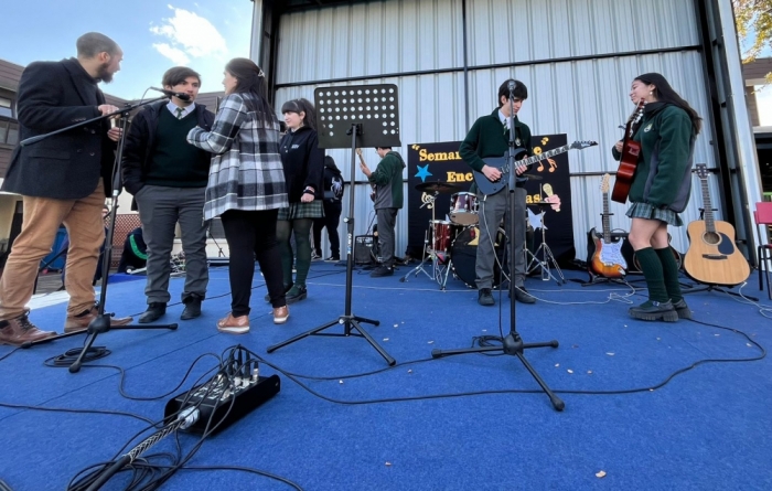 El día miércoles 15 de mayo y en el marco de las actividades de la semana de la Educación artística se participó en un encuentro de bandas organizado por el colegio Bicentenario Nueva Esperanza en donde un total de 10 estudiantes de nuestro colegio participaron interpretando dos canciones preparadas junto a sus profesores de música Flavia Arriagada y Leandro Araya. Felicitamos a los estudiantes por su participación y desplante en el escenario, así como a los profesores por su dedicación.