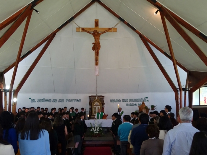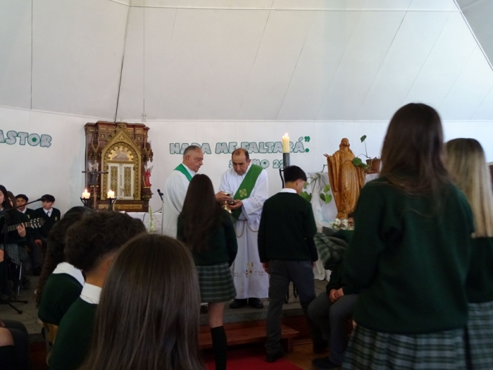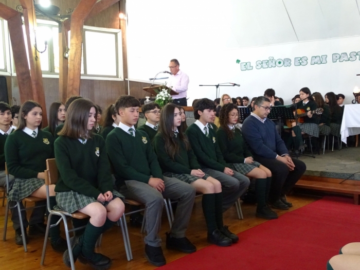 Miércoles 13 de noviembre a las 12:00 horas en la Capilla Inmaculada Concepción de Cholguán se celebró con mucho fervor la Misa de Licenciatura del Cuarto Medio Generación 2024, la Eucaristía la Presidió el Padre Samuel Cereceda y acompañado por el Diácono Gabriel Fuentes, donde el 4°Medio junto a su Profesor jefe Señor Pedro Maldonado, sus familias y la comunidad educativa dieron gracias a Dios por los años que vivieron en nuestro colegio. El tema central fue el Salmo 22 donde “El Señor es mi Pastor, nada puede faltar”, que todos tenemos que buscar a Jesús como Buen Pastor que nos cuide la vida de cada uno, porque desde el corazón del hombre se construye un mundo más humano.